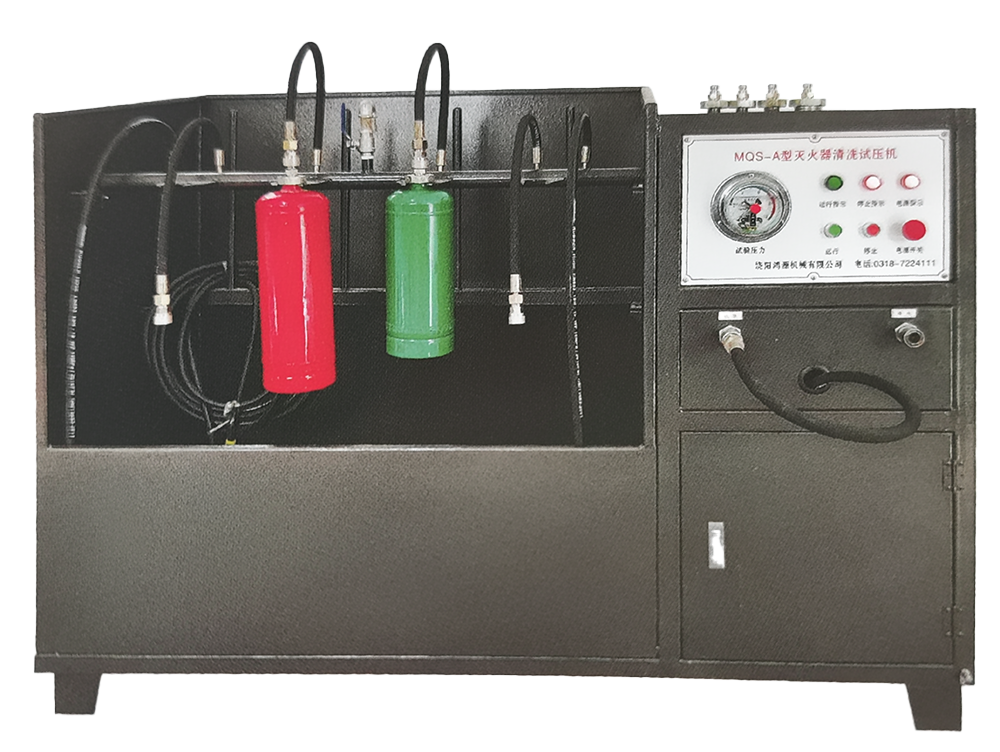 本机将手提式、推车式灭火器筒体水压试验,内部清洗、外部清洗、电动试压泵,结合为本机既节省了配置费用,又提高了工作效率。
