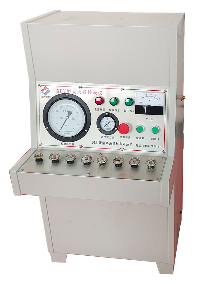 使钢瓶内的压力准确无误的反应在压力表上,从而更加直观的检测灭火器。该校表仪由充气系统和放气系统两部分组成,具有安全可靠、操作简便、生产效率高、校表精度高等优点,是目前消防器材生产、维修厂家必备的对各种灭火器压力表校验的检测设备.